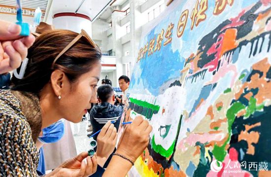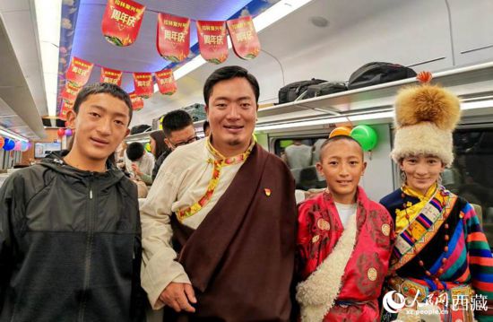拉林鐵路開(kāi)通一周年,旅客祝拉林鐵路生日快樂(lè)。人民網(wǎng) 李海霞攝