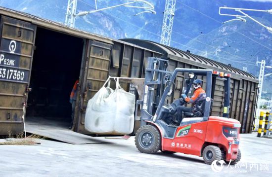 今年3月,拉林鐵路開(kāi)通集裝箱業(yè)務(wù)。人民網(wǎng) 李海霞攝