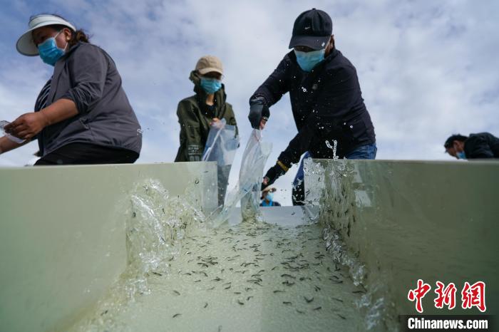 本次放流6種西藏特有魚類,總計(jì)215萬尾?!〗w波 攝