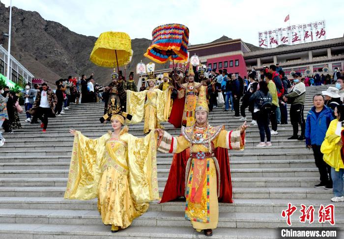 當(dāng)晚,《文成公主》的演員們身著特色民族舞蹈服飾現(xiàn)身劇場(chǎng)外,巡游在慈覺林藏院風(fēng)情街,重現(xiàn)“公主”與“贊普”的和親盛況,并與來自五湖四海的觀眾近距離接觸,切身感受非比尋常的西藏文化。