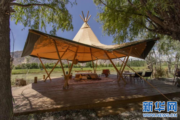 圖為薩己林野奢營地就餐區(qū)(8月2號攝)。新華網(wǎng)發(fā) 旦增曲珍(實習生)攝。