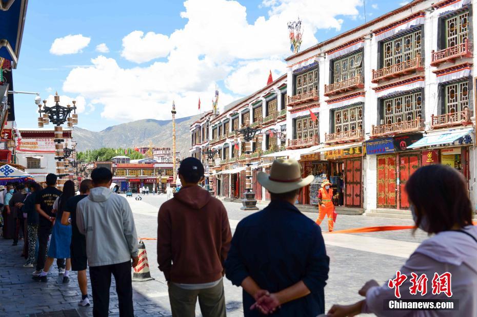 8月9日,西藏拉薩,市民在城關(guān)區(qū)八廓街道的核酸檢測(cè)現(xiàn)場(chǎng)排隊(duì)進(jìn)行核酸檢測(cè)。當(dāng)前,西藏拉薩市設(shè)置545個(gè)核酸檢測(cè)點(diǎn)開(kāi)展全員核酸檢測(cè)。 中新社記者 貢嘎來(lái)松 攝
