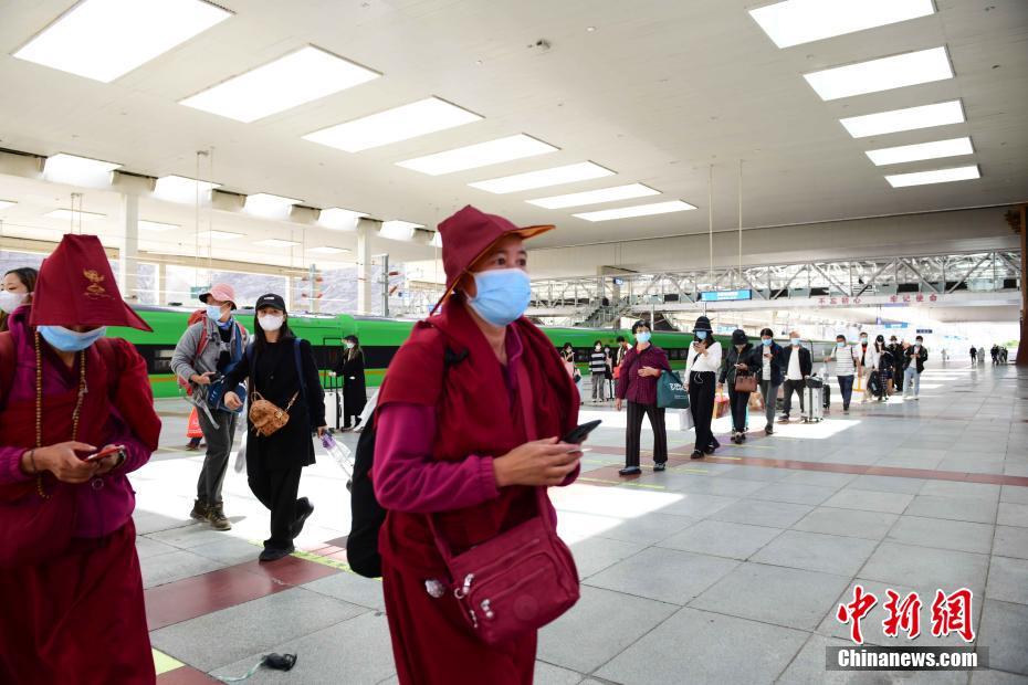 8月11日,旅客有序來到鐵路拉薩站站臺上。據悉,自本次疫情發(fā)生以來拉薩火車站日均離藏運送旅客數量約6000人次,貢嘎機場累計出港旅客約2萬人次。 中新社記者 貢嘎來松 攝