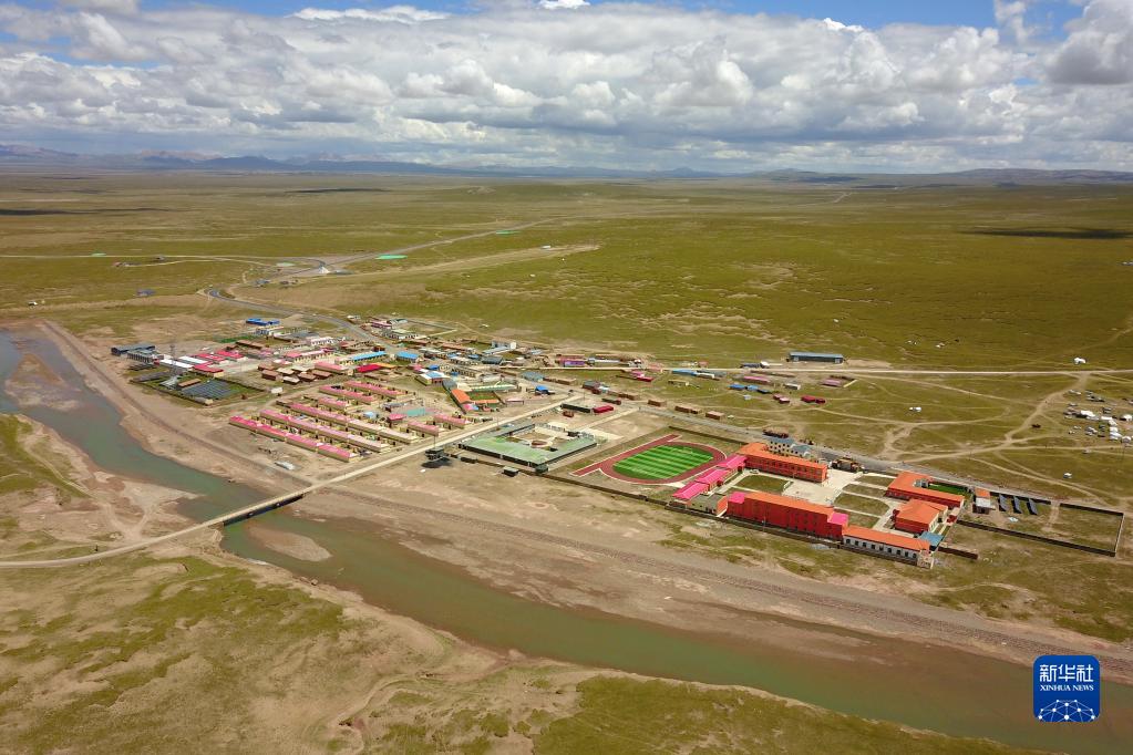 這是8月11日拍攝的治多縣索加鄉(xiāng)衛(wèi)生院所在的索加鄉(xiāng)街道全貌(無人機照片)。新華社記者 范培珅 攝