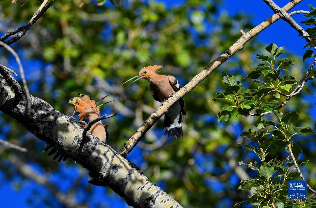 8月25日,幾只戴勝在樹(shù)上嬉戲。新華社記者 張汝鋒 攝