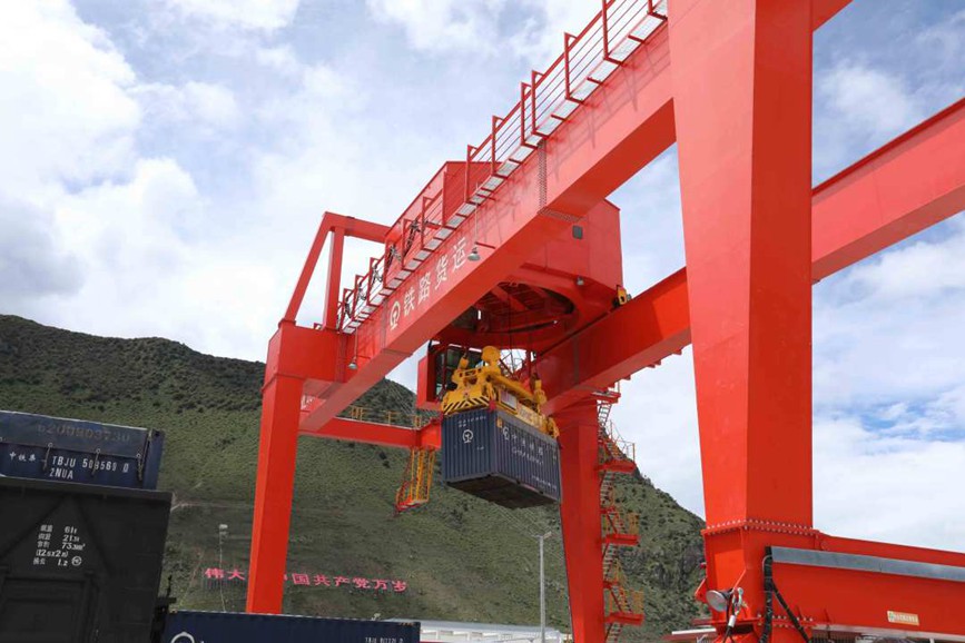 林芝站貨場(chǎng)內(nèi),集裝箱門(mén)吊不停的作業(yè),一車(chē)車(chē)貨物不停的裝運(yùn),一個(gè)個(gè)忙碌的身影也清晰可見(jiàn),他們用堅(jiān)守?fù)Q來(lái)拉林鐵路貨物的安全運(yùn)輸,也為林芝市物資保障貢獻(xiàn)了一份力量。