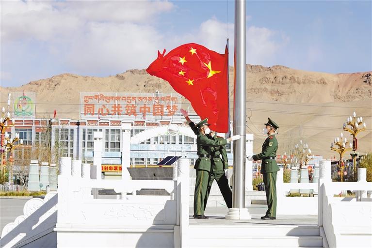 拉薩市堆龍德慶區(qū)的門(mén)堆村和崗吉村組織全體村干部舉行線上線下升國(guó)旗儀式,鮮艷的五星紅旗冉冉升起,飄揚(yáng)在村委會(huì)上空。嘹亮的國(guó)歌聲中,鮮艷的國(guó)旗下,莊嚴(yán)肅穆的氛圍里,熱愛(ài)祖國(guó)、奮發(fā)圖強(qiáng)的情感在每個(gè)人心中激蕩。