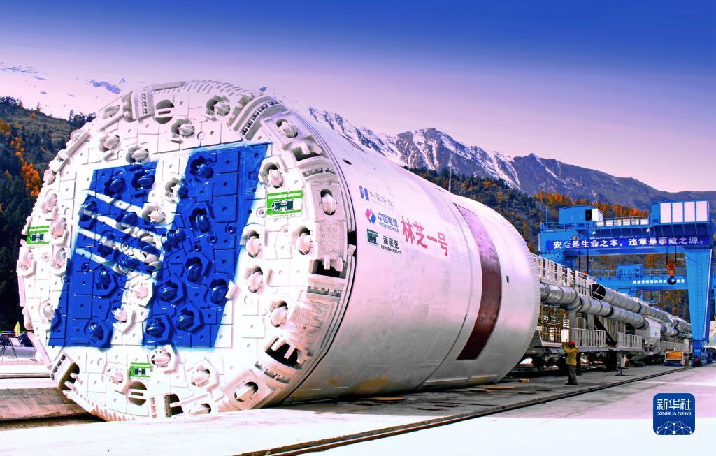 派墨公路多雄拉隧道施工采用的“林芝一號”全斷面雙護(hù)盾硬巖掘進(jìn)機(jī)(TBM)完成組裝并順利進(jìn)行首次滑行(2015年10月29日攝)。新華社發(fā)(董志雄 攝)