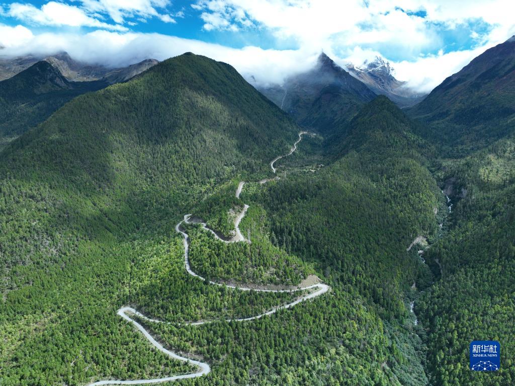 這是2022年9月30日拍攝的派墨公路派鎮(zhèn)起點路段(無人機(jī)照片)。新華社發(fā)(董志雄 攝)