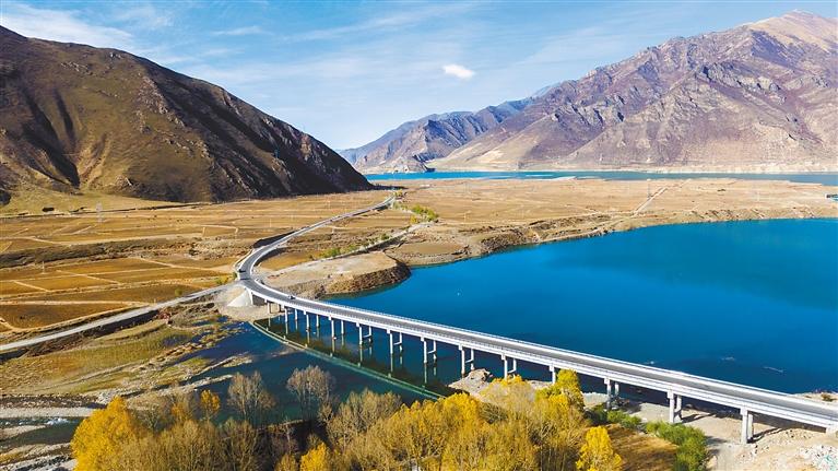 黨的十八大以來,西藏交通運(yùn)輸事業(yè)取得巨大成就,形成了縱橫交錯(cuò)、四通八達(dá)的綜合交通運(yùn)輸網(wǎng)絡(luò)。十年來,全區(qū)公路總里程由6.52萬公里增至12.07萬公里,高等級(高速)公路通車?yán)锍逃?8公里增至1105公里,以拉薩為中心的3小時(shí)綜合交通圈正加快形成,拉林鐵路建成投運(yùn),復(fù)興號首次開上高原……一條條團(tuán)結(jié)線、一條條幸福路,為西藏經(jīng)濟(jì)社會發(fā)展提供了有力支撐。