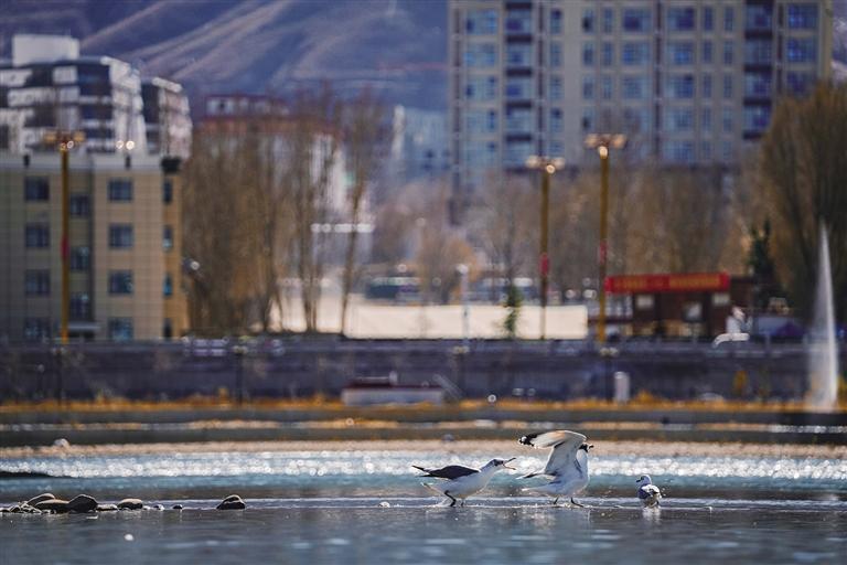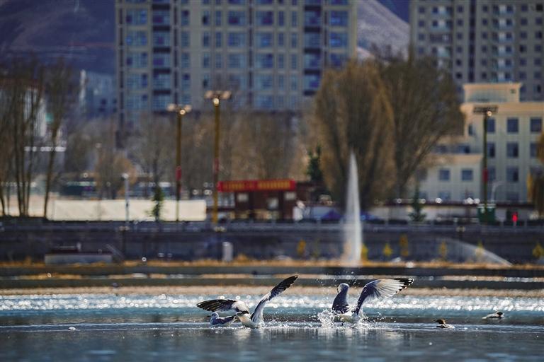 候鳥大約是拉薩入冬的標(biāo)志。初冬時(shí)節(jié),拉魯濕地和拉薩河邊,到處都是從遠(yuǎn)方飛來越冬的黃鴨、斑頭雁。隨著拉薩生態(tài)環(huán)境更加優(yōu)美,這些可愛的精靈選擇在此越冬,讓許多觀鳥愛好者心動。每天清晨天還未亮,他們就早早地守候在水邊,只為記錄下候鳥迎著第一縷朝陽翩然飛舞的景象。