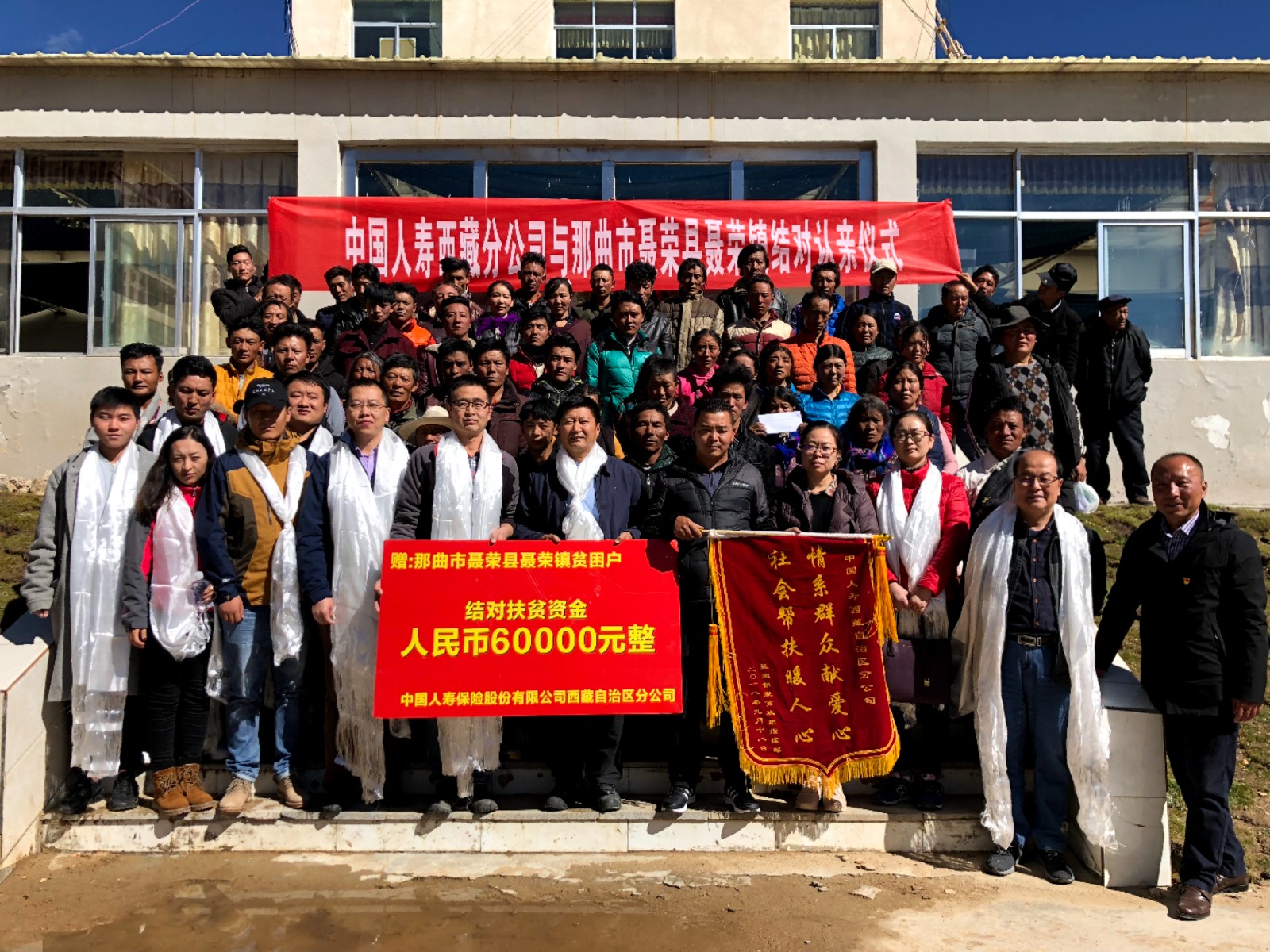 圖為中國(guó)人壽西藏分公司干部職工與那曲市聶榮縣聶榮鎮(zhèn)開(kāi)展結(jié)對(duì)認(rèn)親幫扶活動(dòng)。