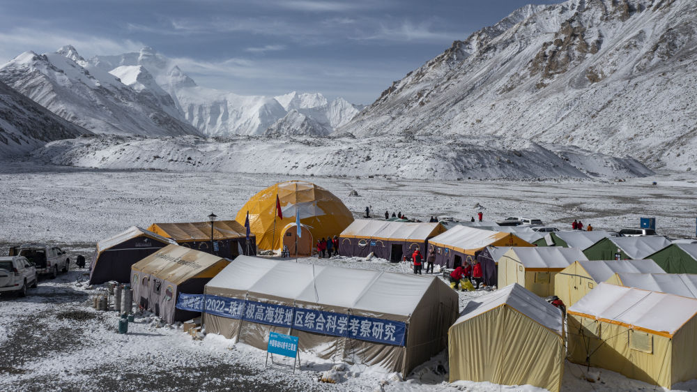 “巔峰使命”珠峰科考營(yíng)地(2022年5月1日攝)。