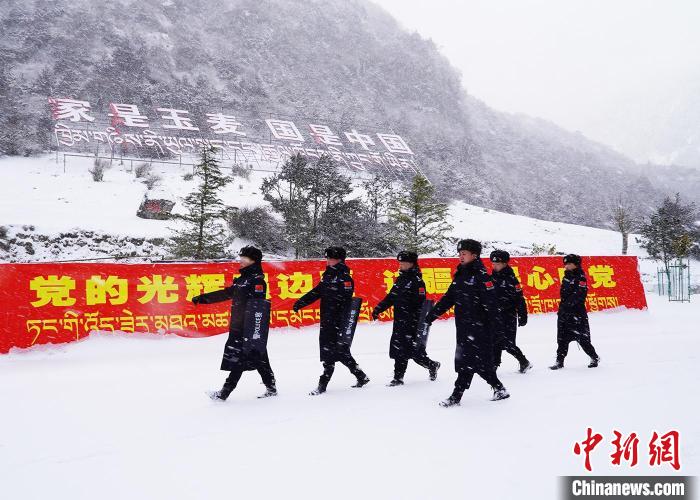 圖為玉麥邊境派出所移民管理警察在大雪中執(zhí)行巡邏任務?!?蔣兵 攝