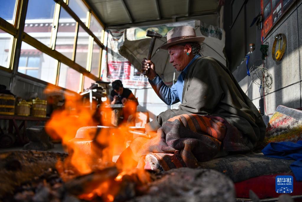 2018年,父子倆成立合作社,先后招收包括貧困戶在內(nèi)的18名學(xué)徒,傳承藏刀制作技藝,共同“鍛造”富裕生活。
