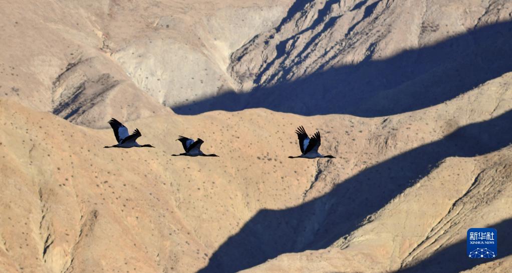 在西藏雅魯藏布江中游河谷黑頸鶴國(guó)家級(jí)自然保護(hù)區(qū)日喀則市拉孜縣越冬的黑頸鶴(1月23日攝)。新華社記者 孫非 攝