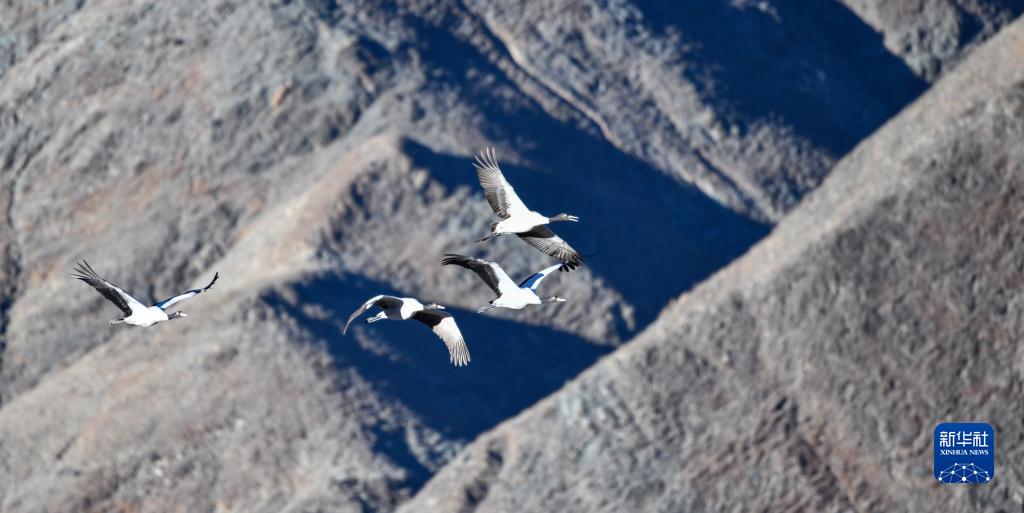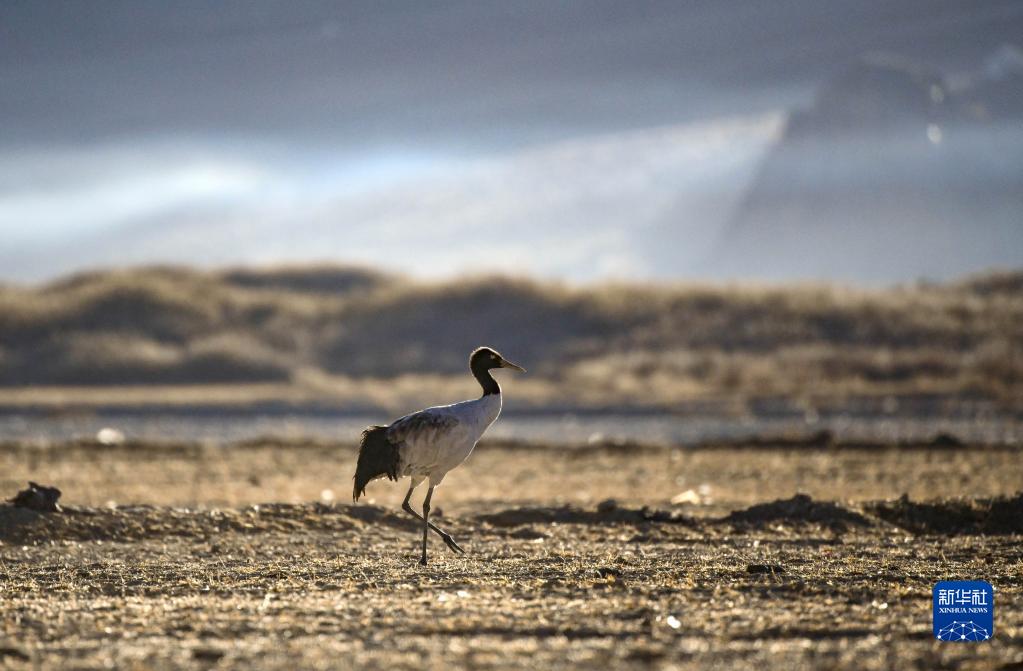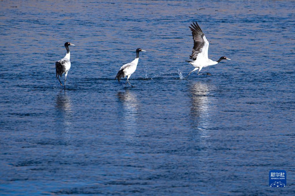 在西藏雅魯藏布江中游河谷黑頸鶴國(guó)家級(jí)自然保護(hù)區(qū)日喀則市拉孜縣越冬的黑頸鶴(1月23日攝)。新華社記者 晉美多吉 攝