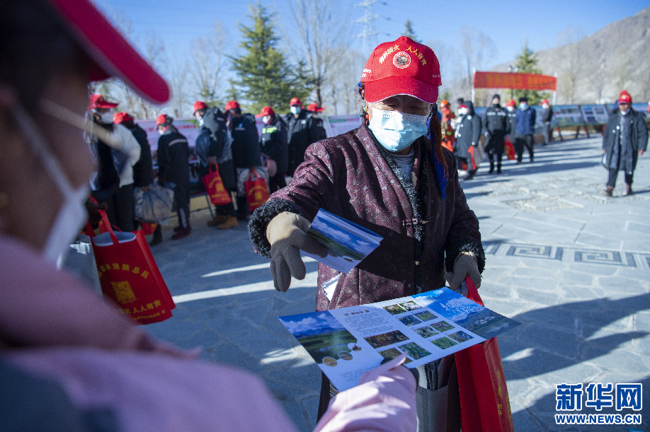 2月2日,拉薩市拉魯濕地國家級自然保護區(qū)管理局工作人員向群眾發(fā)放濕地保護宣傳單。新華網(wǎng) 旦增努布攝