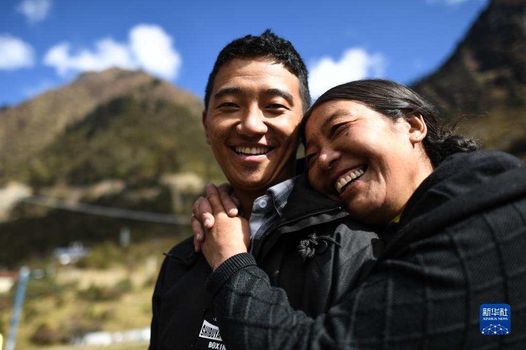 央宗和兒子索朗頓珠在一起(2017年10月29日攝)。索朗頓珠是玉麥鄉(xiāng)第一位大學(xué)生。新華社記者 普布扎西 攝