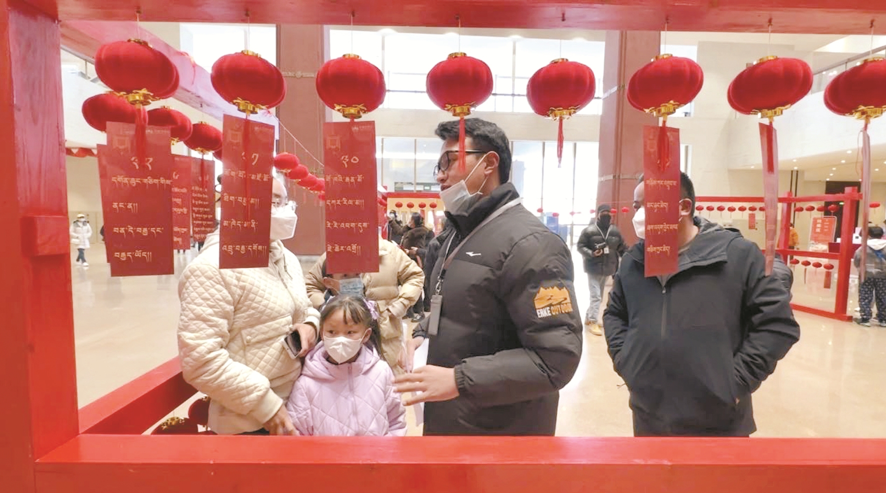 2月5日,西藏博物館開展“我們的節(jié)日——在西藏博物館里過元宵”猜燈謎民俗文化活動,在現(xiàn)場,工作人員精心準備了200百余條妙趣橫生的藏漢雙語燈謎,一張張謎條隨著紅火燈籠搖擺,顯得分外喜慶。市民群眾和前來參觀的游客躍躍欲試,有的手執(zhí)謎條獨自思索,有的三三兩兩聚在一起討論,陸陸續(xù)續(xù)猜出了燈謎,領(lǐng)取到了心儀的禮品。