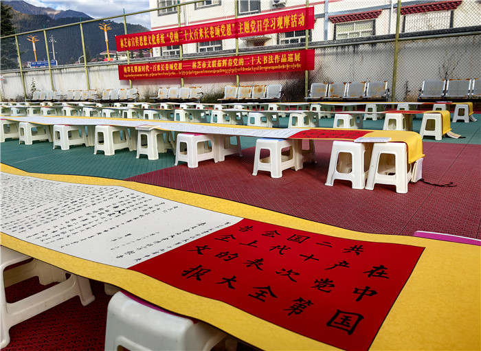 創(chuàng)新載體,全方位宣傳。林芝市統(tǒng)籌各類宣傳資源,線上線下同頻共振,全方位、多角度、寬領(lǐng)域、深層次宣傳黨的二十大精神和區(qū)黨委十屆三次全會、市委二屆三次全會精神,營造學(xué)習(xí)宣傳的濃厚氛圍。一是新聞宣傳強(qiáng)信心。林芝報(bào)、林芝廣播電視臺、西藏林芝網(wǎng)、微林芝等市屬主流媒體紛紛開設(shè)《學(xué)習(xí)貫徹黨的二十大》《新時(shí)代新征程新偉業(yè)》等多個(gè)專題專欄,持續(xù)推出學(xué)習(xí)貫徹黨的二十大精神相關(guān)報(bào)道。截至目前,共刊播《基層宣講員讓黨的二十大精神翩翩飛入百姓家》《軍民共話美好未來 繪就美麗鄉(xiāng)村新畫卷》等相關(guān)新聞2500余條。二是社會面宣傳筑同心。采取“屏、板、欄、幅”立體宣傳方式,在全市各級黨政機(jī)關(guān)和企事業(yè)單位大門LED電子顯示屏以及市、縣城區(qū)主要街道、跨街龍門、出租車頂燈、汽車站等公共場所的宣傳媒介上滾動播放自治區(qū)統(tǒng)一印發(fā)的宣傳標(biāo)語1.2萬余條次,更新懸掛國旗3.5萬余面,制作發(fā)放宣傳海報(bào)1.5萬張、宣傳品2500余個(gè),形成抬頭可見、隨處可學(xué)的濃厚社會氛圍。察隅縣上察隅鎮(zhèn)遲巴村村“兩委”和駐村工作隊(duì)用彩色粉筆繪制黨的二十大、“新黨章”等主題黑板報(bào),用畫筆向村民傳遞黨的最新政策,深受群眾喜愛。三是網(wǎng)絡(luò)宣傳聚民心。充分發(fā)揮新媒體平臺宣傳形式豐富的特點(diǎn),持續(xù)推送重磅報(bào)道和重點(diǎn)文章,策劃打造一批融媒體產(chǎn)品,在全網(wǎng)迅速興起學(xué)習(xí)宣傳貫徹會議精神熱潮。市委網(wǎng)信辦策劃制作短視頻《學(xué)習(xí)黨的二十大精神 談心得感悟》、“林芝融媒”抖音號推出《二十大時(shí)光》微視頻,將鏡頭對準(zhǔn)二十大代表、基層黨員群眾,展現(xiàn)全市干部群眾積極向上的良好風(fēng)貌。“巴宜融媒”抖音號推出“黨的二十大精神快問快答”系列活動,線上線下聯(lián)動學(xué)習(xí),推動黨的二十大精神入腦入心?!安煊缛诿健倍兑籼柌邉濋_展《鄉(xiāng)村振興正當(dāng)時(shí)》黨的二十大主題抖音直播活動,通過網(wǎng)絡(luò)直觀展現(xiàn)新時(shí)代察隅新農(nóng)村、新氣象、新希望。目前已開展7場直播活動,觀看人數(shù)達(dá)10萬人次。四是文藝宣傳暖人心。充分發(fā)揮市、縣(區(qū))、村三級文藝文化團(tuán)體作用,組織開展“深入生活 扎根人民”“幸福不忘共產(chǎn)黨 陽光路上夢起航”等各類文藝文化活動,精心打造文藝精品力作,用文藝活動、文藝作品溫暖人心。截至目前,各級文藝演出隊(duì)開展文藝匯演293場次,參與人數(shù)4.2萬余人次;創(chuàng)作推出音樂作品《沐浴幸?!?、攝影作品《我和國旗》、書法美術(shù)作品《建功新時(shí)代 奮進(jìn)新征程》、文學(xué)作品《黨的光輝照萬家》等文藝作品300余個(gè)。波密縣完全小學(xué)在崗云杉林景區(qū)組織開展“學(xué)習(xí)黨的二十大,爭做好少年”采風(fēng)寫生活動,學(xué)生們以文藝創(chuàng)作的形式學(xué)習(xí)黨的二十大精神,并將學(xué)習(xí)成果轉(zhuǎn)化到作品中。市民族藝術(shù)團(tuán)以深入挖掘歷史文化、講好紅色故事為主題,籌拍了微電影《立定村屹立的紅旗》。市文聯(lián)書法美術(shù)家協(xié)會理事茹輝春同志,在黨的二十大召開后用行、楷兩種書法形式撰寫了黨的二十大報(bào)告全文書卷,書卷共有八卷,每卷長30米。市委宣傳部、市文廣局、市文聯(lián)組織市書法美術(shù)家協(xié)會開展“禮贊二十大·送福進(jìn)萬家”林芝市2023年新春書法美術(shù)家“深入生活 扎根人民”送祝福和采風(fēng)活動,共開展送春聯(lián)活動15場次,送出對聯(lián)、福字、掛軸、繪畫等作品8950幅(對),服務(wù)群眾6700余人次。