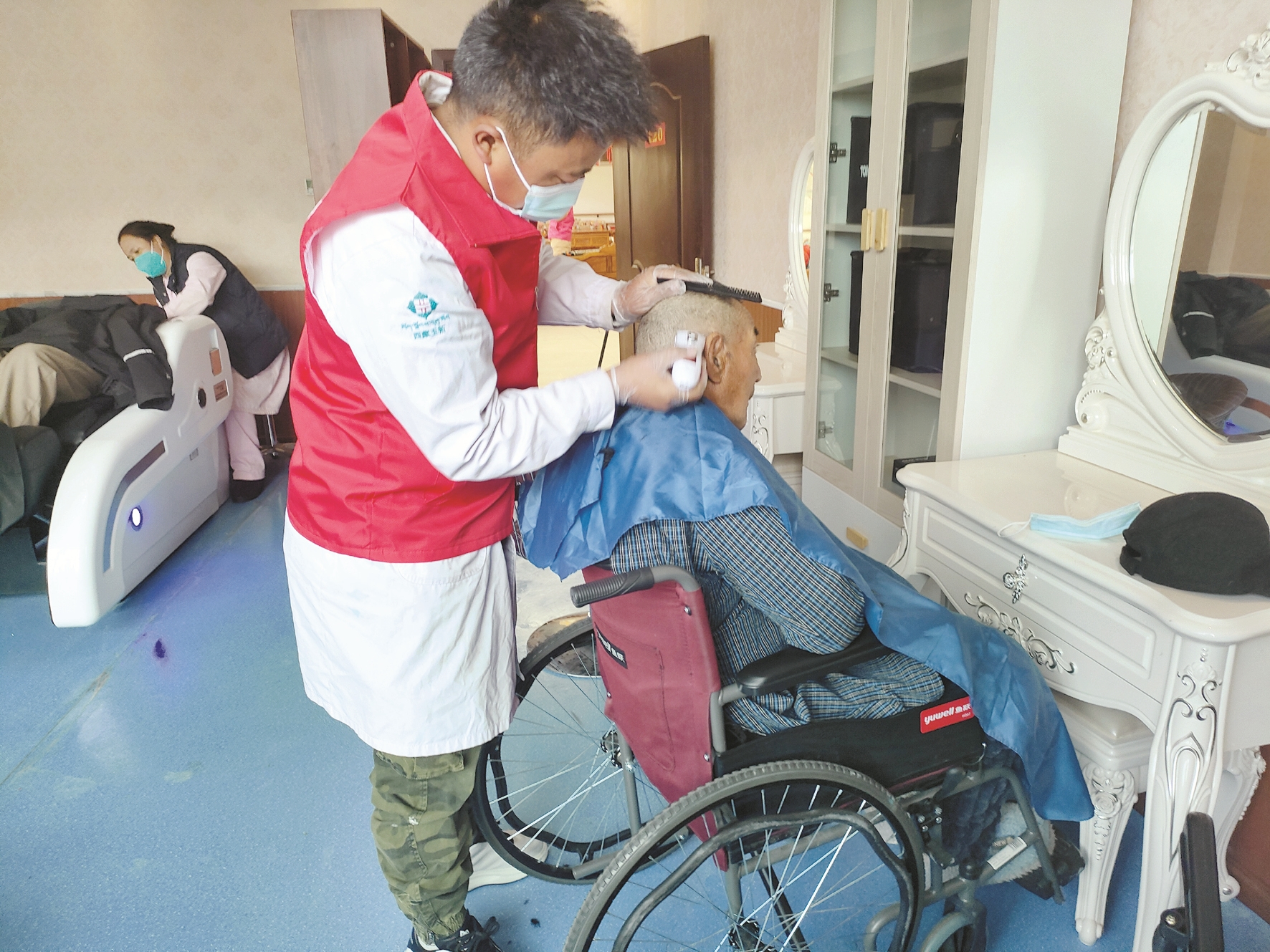 圖為學(xué)雷鋒活動(dòng)日當(dāng)天,志愿者為市社會(huì)福利院老人理發(fā)。 拉薩融媒記者 李從芳攝