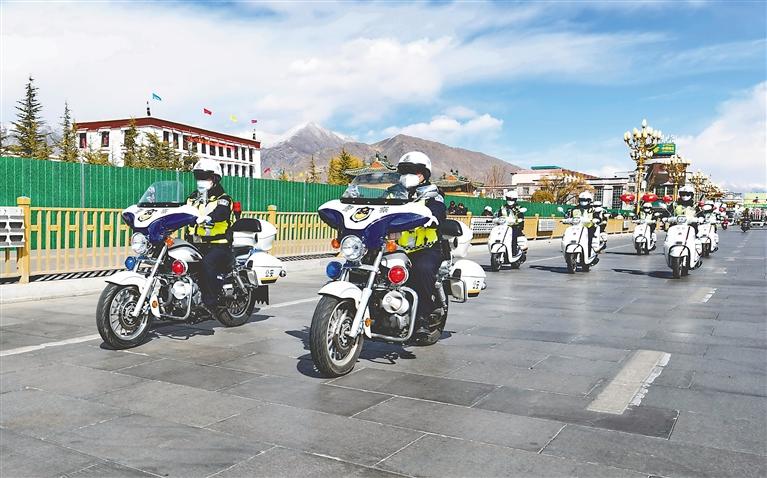 拉薩市公安局交警支隊城北大隊女子中隊交警颯爽英姿。唐斌 攝