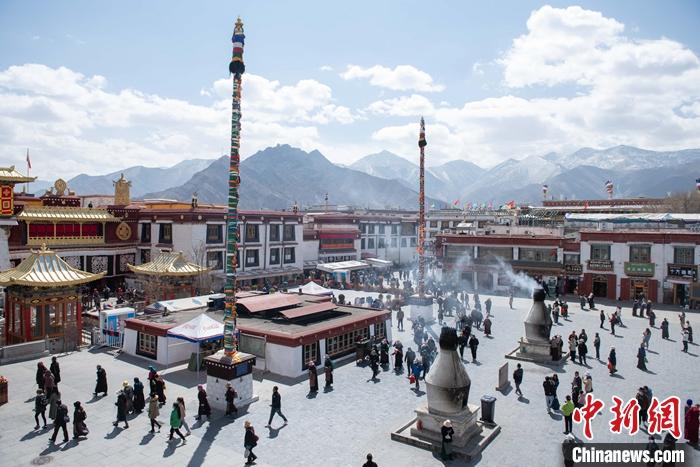 3月14日,八廓街人流如織。 中新社記者 貢嘎來(lái)松 攝