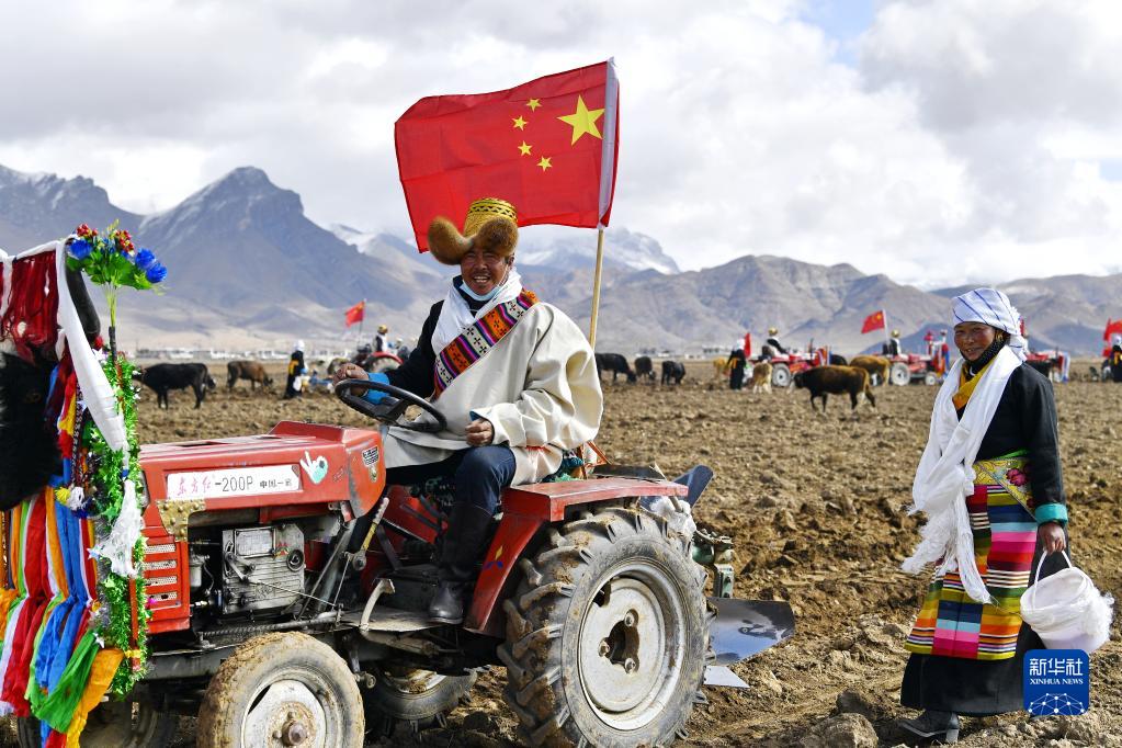 西藏拉薩市林周縣強(qiáng)嘎村的春耕儀式現(xiàn)場(chǎng)(3月16日攝)。新華社記者 晉美多吉 攝