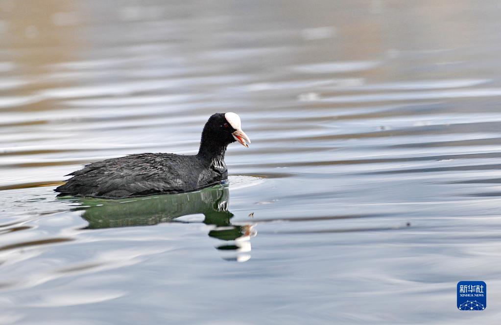 這是在拉魯濕地拍攝的骨頂雞(3月30日攝)。新華社記者 張汝鋒 攝