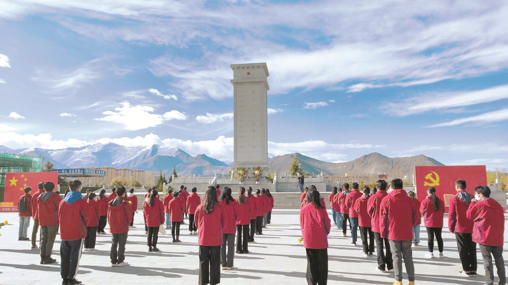 鮮花寄哀思,傳承慰英魂?;顒?dòng)現(xiàn)場(chǎng),90余名“西部計(jì)劃”西藏專項(xiàng)志愿者身著紅色志愿服,手持黃色菊花,向革命先烈集體默哀,并瞻仰革命烈士紀(jì)念碑向革命先烈敬獻(xiàn)花籃,表達(dá)對(duì)革命先烈的無限崇敬之情和深情哀思。