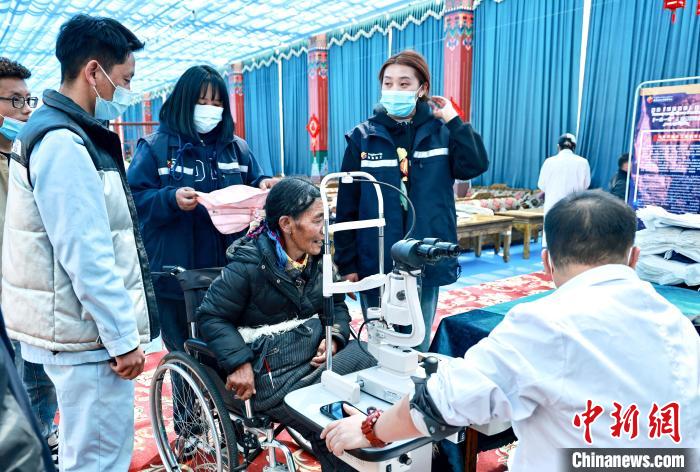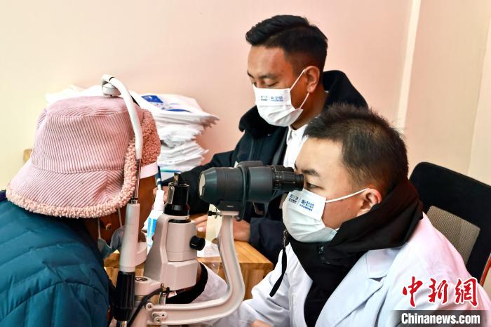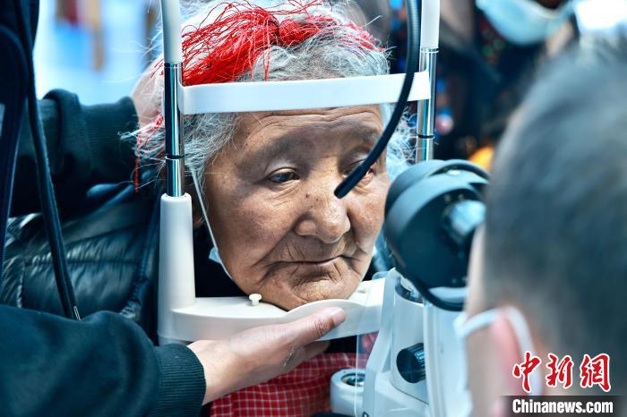 圖為專業(yè)眼科醫(yī)生為老人檢測視力。 格桑 攝
