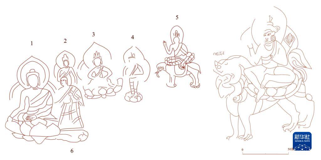 西藏自治區(qū)文物保護研究所文博館員赤列次仁說,根據芒康縣文化局工作人員提供的線索,考古人員發(fā)現(xiàn)這3處摩崖石刻造像與藏東吐蕃摩崖造像有一定共同性,但也表現(xiàn)出自身的獨特性,它們當中既有疑似翻檐筒帽和并穿圓形大耳環(huán)等新的藝術表現(xiàn)形式,還有釋迦牟尼佛、乘象普賢與騎獅文殊菩薩等較為罕見題材。