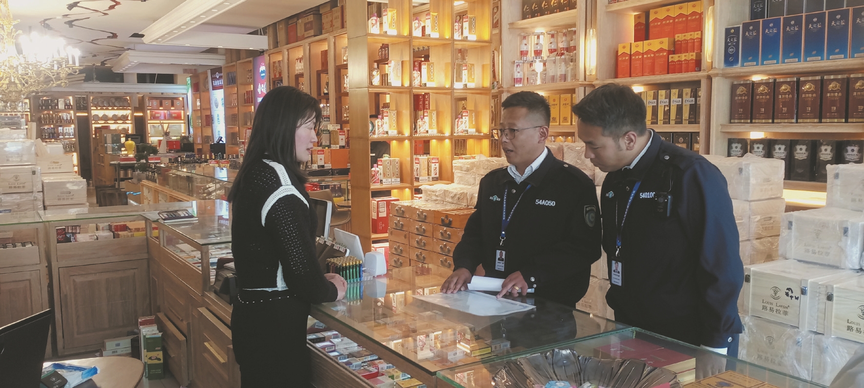 圖為執(zhí)法人員對拉薩市煙草零售終端店進(jìn)行突擊檢查。拉薩融媒記者 齊永昌攝