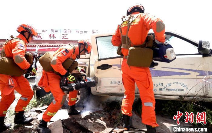 圖為演練中利用破拆工具救助車(chē)輛被困人員。西繞拉翁 攝