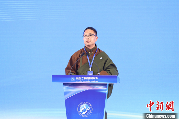 5月23日,“2023·中國西藏發(fā)展論壇”在北京舉行。中國藏學(xué)研究中心總干事鄭堆發(fā)言介紹了中共十八大以來,西藏傳統(tǒng)文化得到傳承、保護(hù)和發(fā)展的情況。 中新社記者 蔣啟明 攝