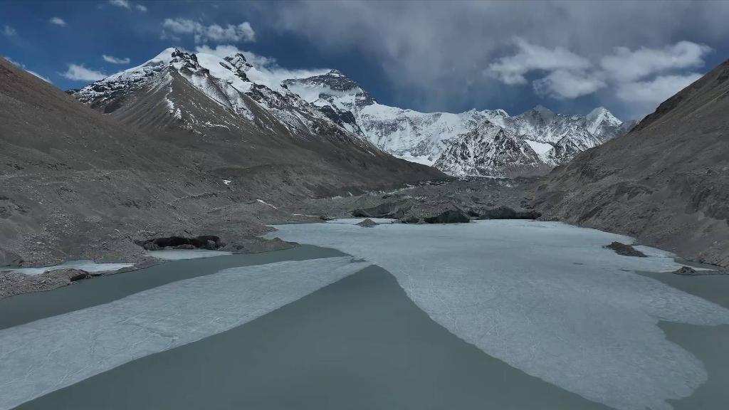 在海拔5200米的登山大本營附近的絨布河進(jìn)行完檢測后,科考人員一行計(jì)劃前往約三公里外的中絨布冰川末端的冰湖,采集冰川融水樣本并檢測水質(zhì)。