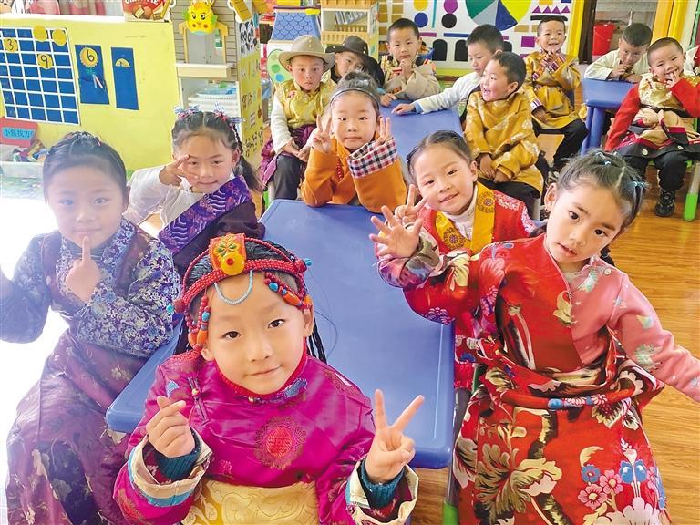 身著民族服飾的昌都市第二幼兒園大一班的孩子們。
