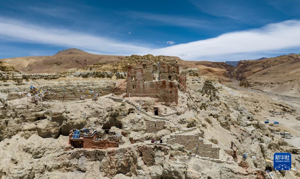 空中俯瞰皮央石窟全景(5月26日攝,無人機照片)。新華社記者 晉美多吉 攝