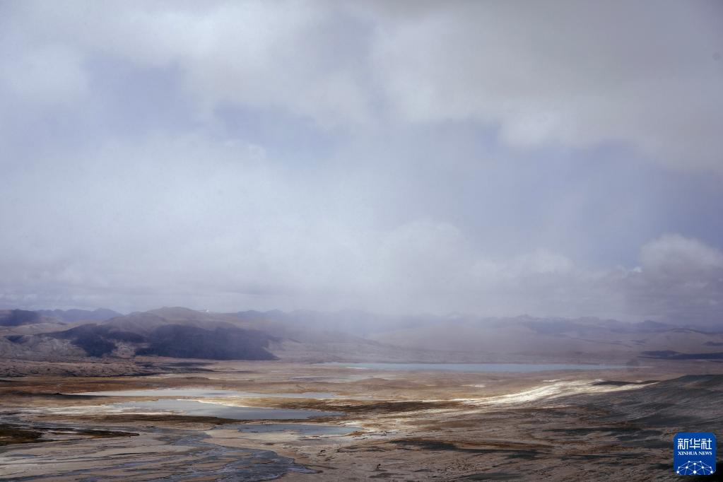杰瑪央宗冰川融化后形成的河床(5月31日攝,無(wú)人機(jī)照片)。新華社記者 晉美多吉 攝