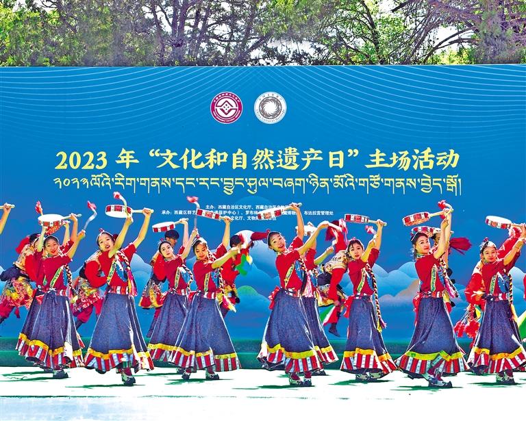 圖為西藏2023年“文化和自然遺產(chǎn)日”主場(chǎng)活動(dòng)現(xiàn)場(chǎng),西藏大學(xué)藝術(shù)學(xué)院帶來(lái)的舞蹈《東洛熱巴》。記者 旦增蘭澤 攝
