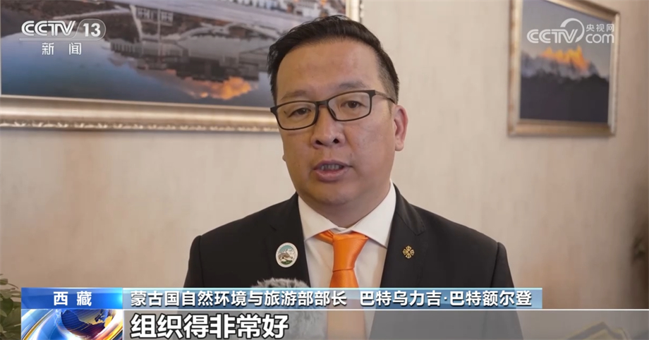 蒙古國(guó)自然環(huán)境與旅游部部長(zhǎng) 巴特烏力吉·巴特額爾登:我是第一次來(lái)西藏,(本屆中國(guó)西藏旅游文化國(guó)際博覽會(huì))組織得非常好,不僅是旅游,也談到了自然環(huán)境問(wèn)題,受到很多啟發(fā)。