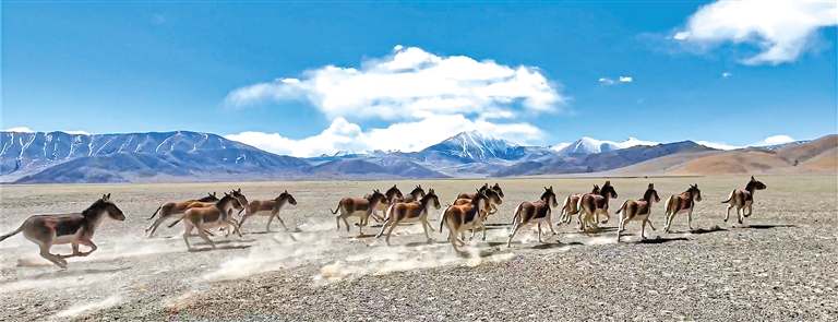 圖為在羌塘國家級自然保護區(qū)內(nèi)奔跑的藏野驢。邊巴多吉 攝