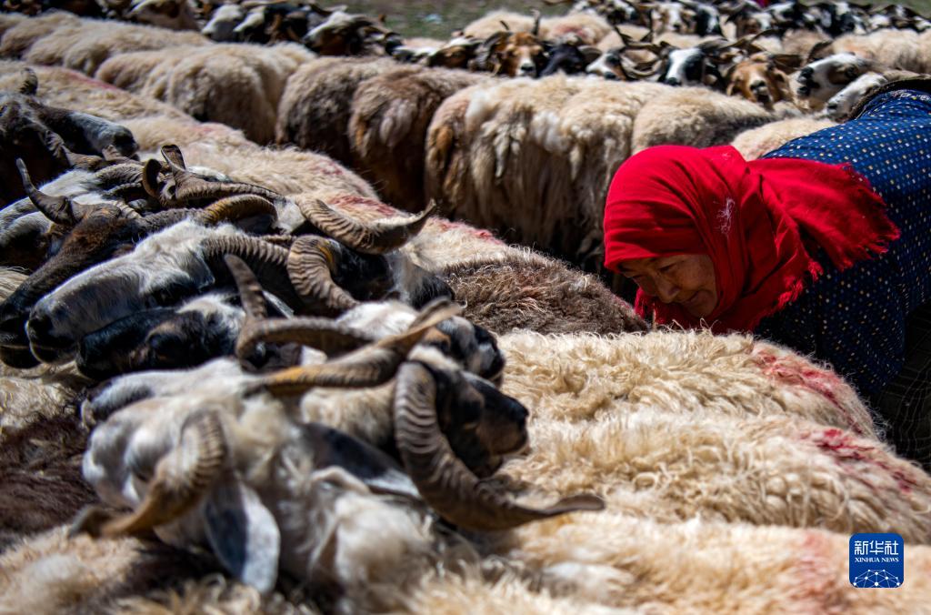 多爾格村的一名村民在擠羊奶(7月11日攝)。新華社記者 姜帆 攝