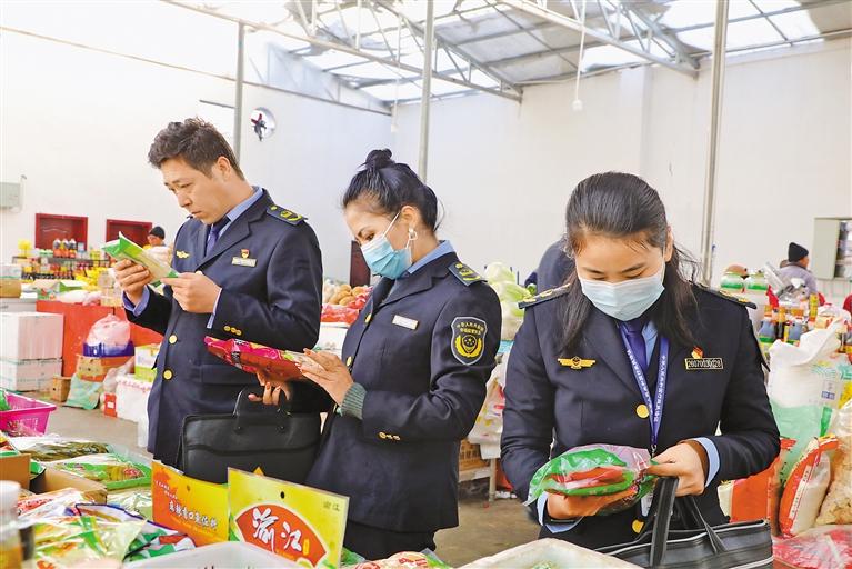 圖為阿里地區(qū)市場監(jiān)督局工作人員在菜市場進(jìn)行專項(xiàng)檢查。記者 永青 攝