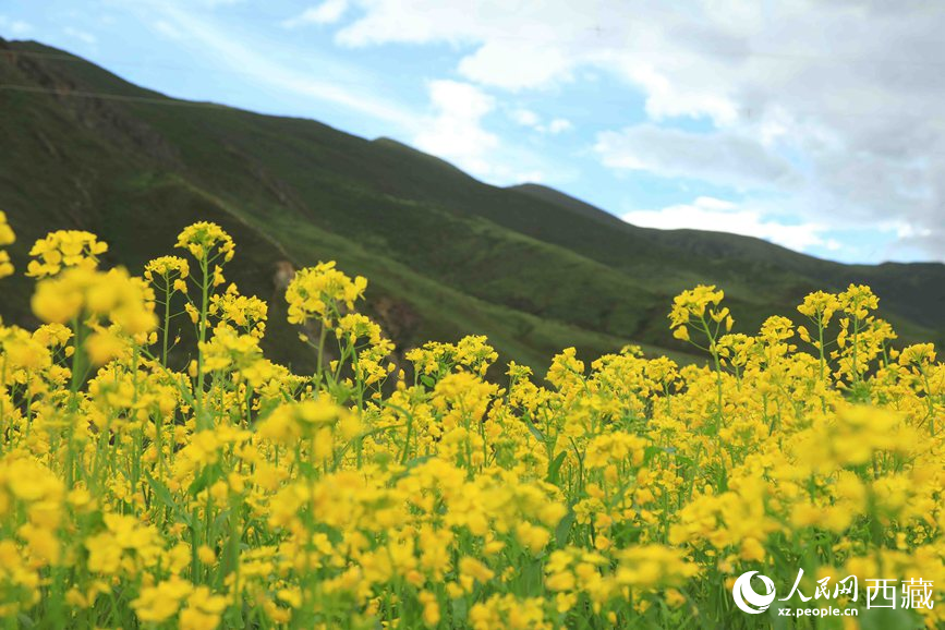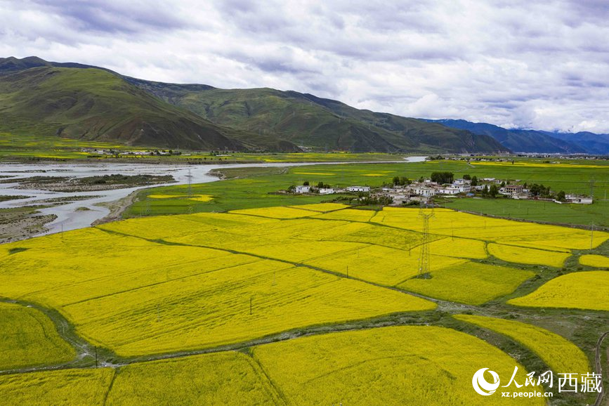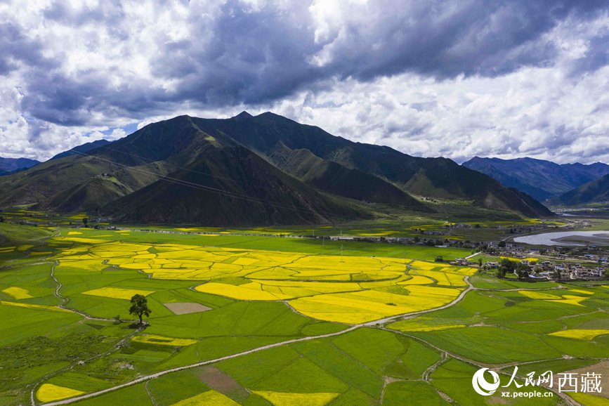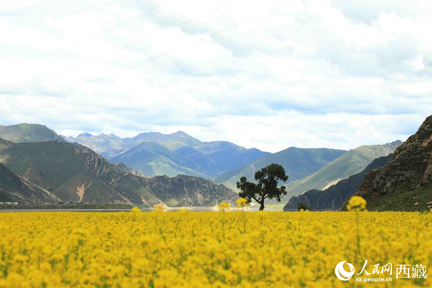 七月,正值拉薩墨竹工卡縣油菜花盛放的季節(jié)。經(jīng)過充足的光照、豐沛的雨水,大地仿佛披上金毯,黃燦燦的油菜田與翠綠的山巒構(gòu)成了一幅美麗的鄉(xiāng)野畫卷。