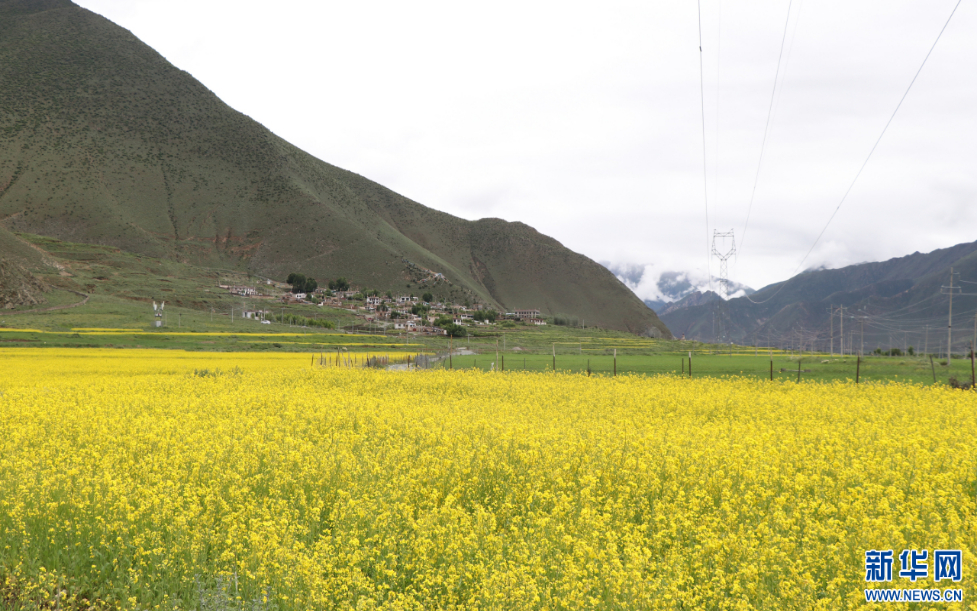 圖為西藏拉薩市墨竹工卡縣內(nèi)綻放的油菜花(7月16日攝)。新華網(wǎng)發(fā) 何冰婕 攝