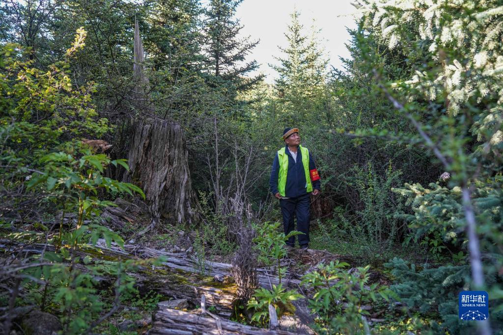 結(jié)巴村村民索朗班旦在林間巡邏(7月20日攝)。新華社記者 孫非 攝