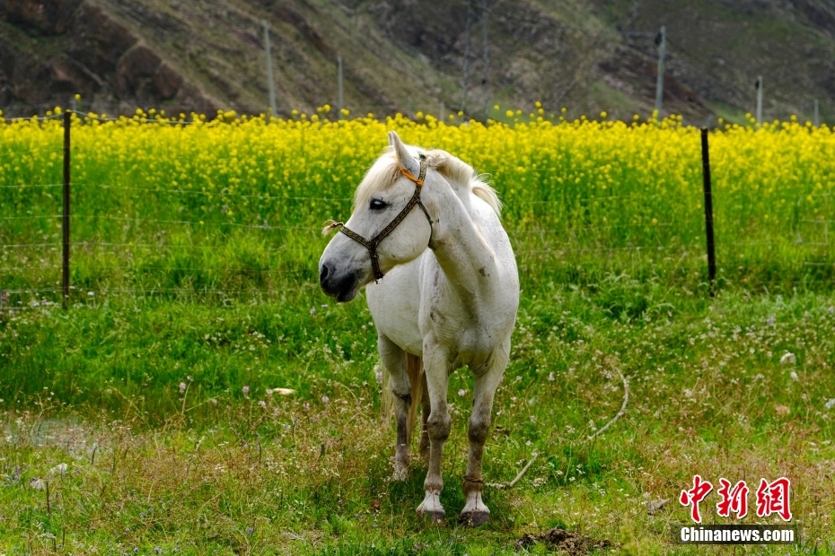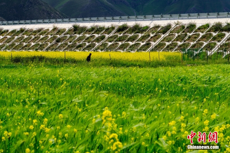 7月24日,西藏拉薩,國(guó)道109線一側(cè)的油菜花田。