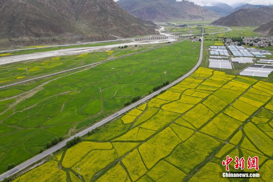7月24日,航拍西藏堆龍曲沿岸的油菜花田與青稞地。堆龍曲是拉薩河支流,源頭位于念青唐古拉山脈西南,流經(jīng)羊八井、德慶鎮(zhèn),至堆龍德慶區(qū)注入拉薩河干流。近日,西藏堆龍曲兩岸油菜花盛放,呈現(xiàn)出一幅“高原不與四時(shí)同、七月才開二月花”的美麗景象。駕車經(jīng)過(guò)或漫步其間,高原油菜花散發(fā)出陣陣花香,像是“春天的味道”。
